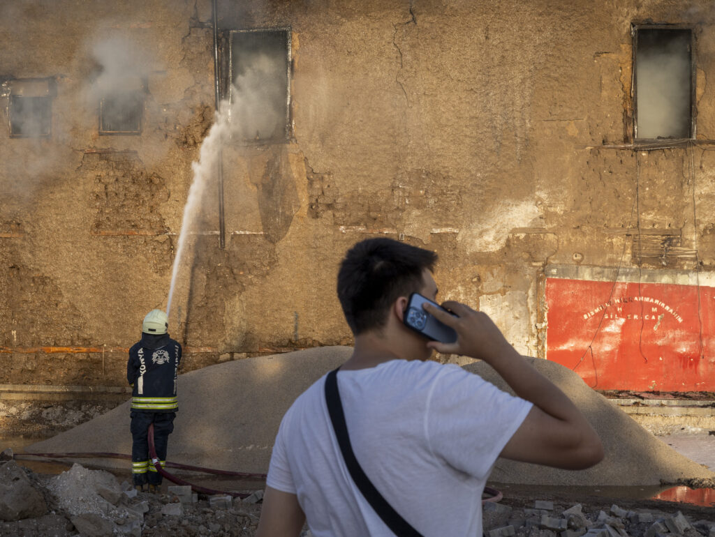 Il pomeriggio seguente, vagando tra strade e moschee, mi imbatto in un incendio. È un vecchio edificio che il giorno prima avevo fotografato. Intorno, un viavai di persone: pompieri che combattono le fiamme, curiosi, bambini che si annoiano presto e trovano altro da fare. Giocano nella polvere, avvolti dal fumo.
