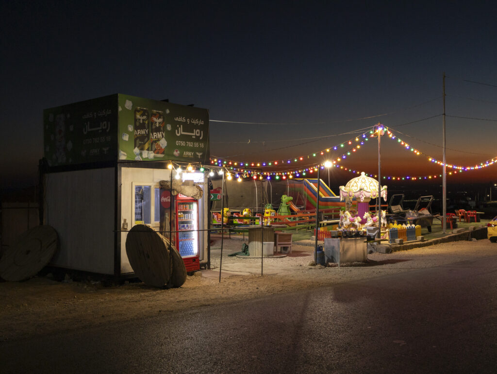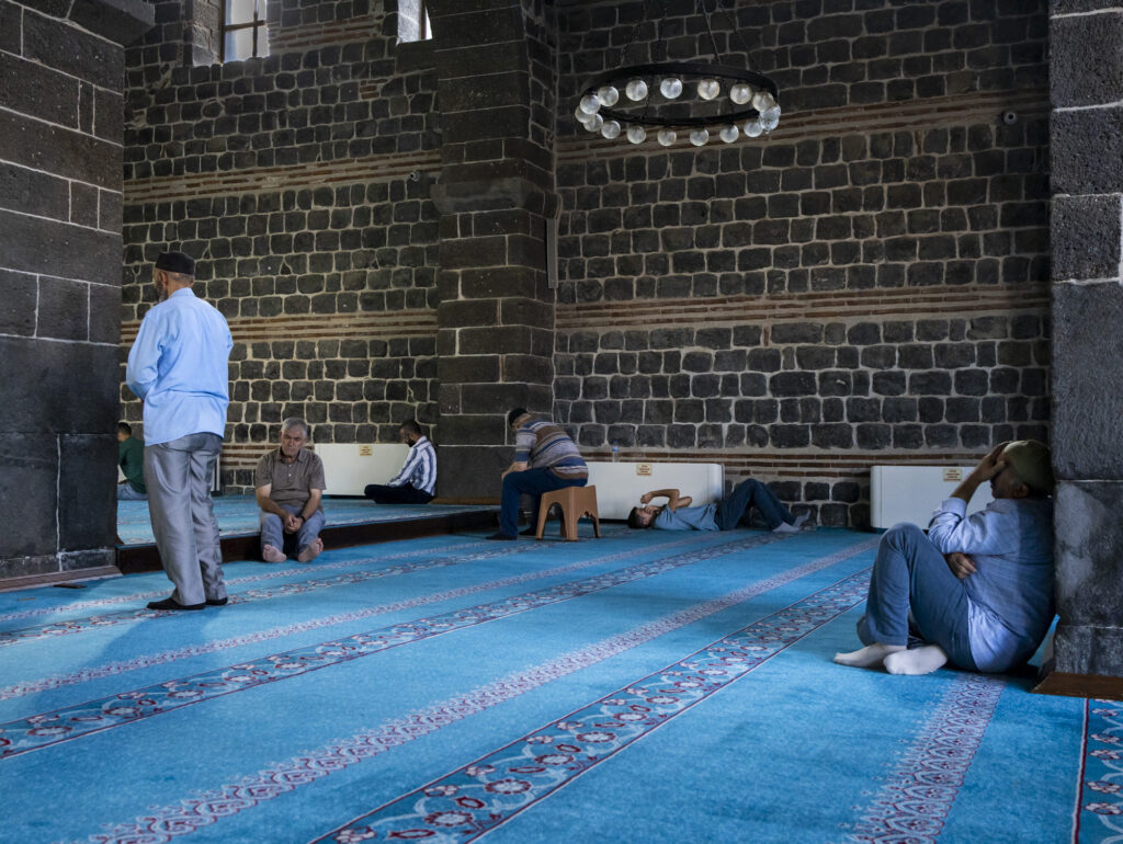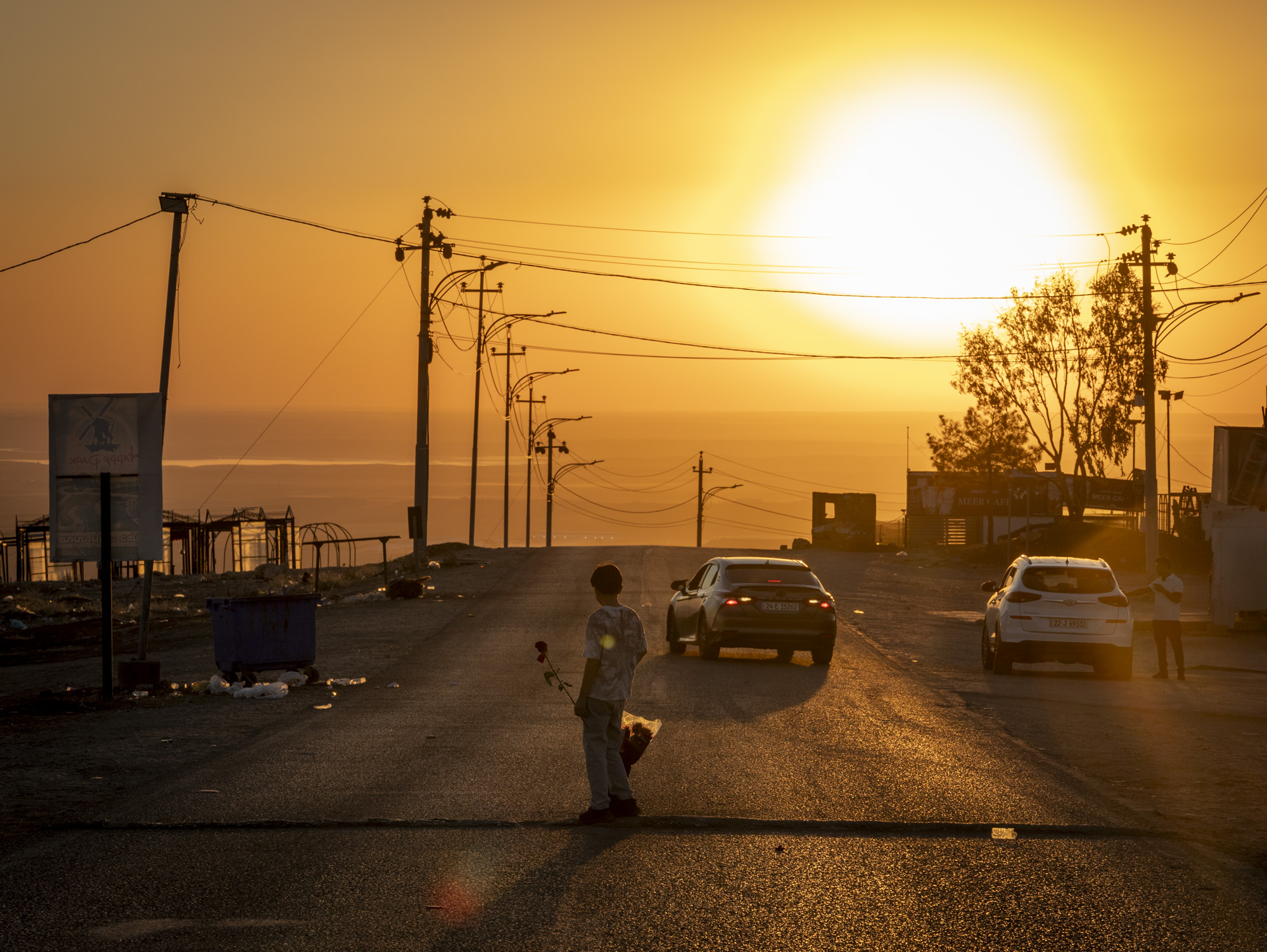 Quando mi sveglio la mattina, il benzinaio sembra essersi fermato nel tempo. Un ragazzo dorme su una panca, uno su un divano all’aperto, un altro su una sedia coi piedi sul tavolo. Un uomo anziano legge il Corano a bassa voce seduto per terra, con le gambe incrociate. Mi fa un cenno con lo sguardo.