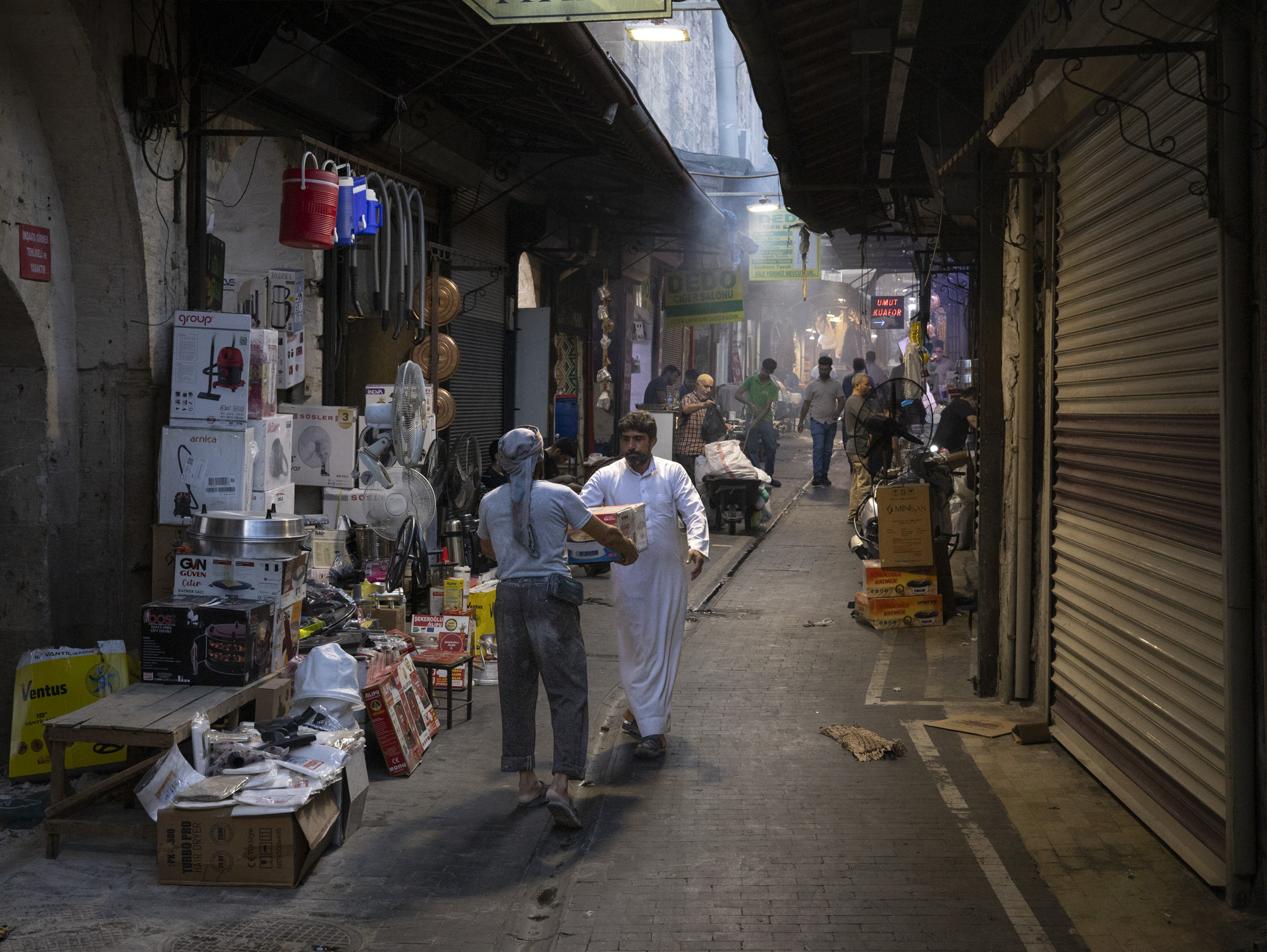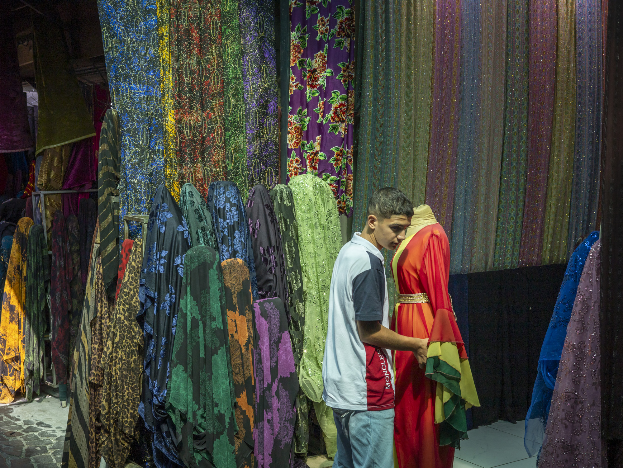 Nonostante questi luoghi di forte spiritualità, i luoghi che mi attirano di più rimangono gli stretti vicoli, i capillari pieni di vita della città vecchia. La mia timidezza nei suoi confronti si dissipa lentamente. Durante il giorno, quando i muri scottano per il sole tremendo, gli unici abitanti sembrano essere quasi solo i bambini. Al mio passaggio c’è chi scappa, chi mi segue, chi mi osserva paralizzato o chi chiede una foto. Gli adulti, per lo più, mi osservano di nascosto da dietro le finestre, chi dallo spioncino della porta. Mentre guardo la città dall’alto un uomo mi si avvicina e mi chiede se sia già stato derubato nel labirinto, poi se ne va. Col passare delle ore il sole lascia le strade e il mondo finalmente riprende vita. Mi ritrovo ora a parlare con un sacco di persone. Vengo accolto in un forno, dove vengo fatto entrare trionfalmente tra chi stende farina, chi inforna e chi condisce. Sono tanti i curiosi che mi guardano da fuori. Appena a fianco, lungo la strada, conosco Halil, un uomo che gestisce un piccolo negozio di stampe fotografiche. Passo lunghi lassi di tempo con lui a bere tè, a parlare in un inglese stentato ma efficace, e a osservare le persone. Vende immagini di ogni tipo: paesaggi, città iconiche, personaggi famosi, soldati. La cosa che più mi stupisce è però che quelli che vedo vendergli di più raffigurano Il Padrino, vari personaggi di aspetto mafioso e un coreano con un gilet di piumino nero e gli occhiali da sole, estremamente tamarro. Sogna di comprare una macchina fotografica e di spostare il proprio negozio su una strada più trafficata. Dove si trova ora gli affari sono duri.