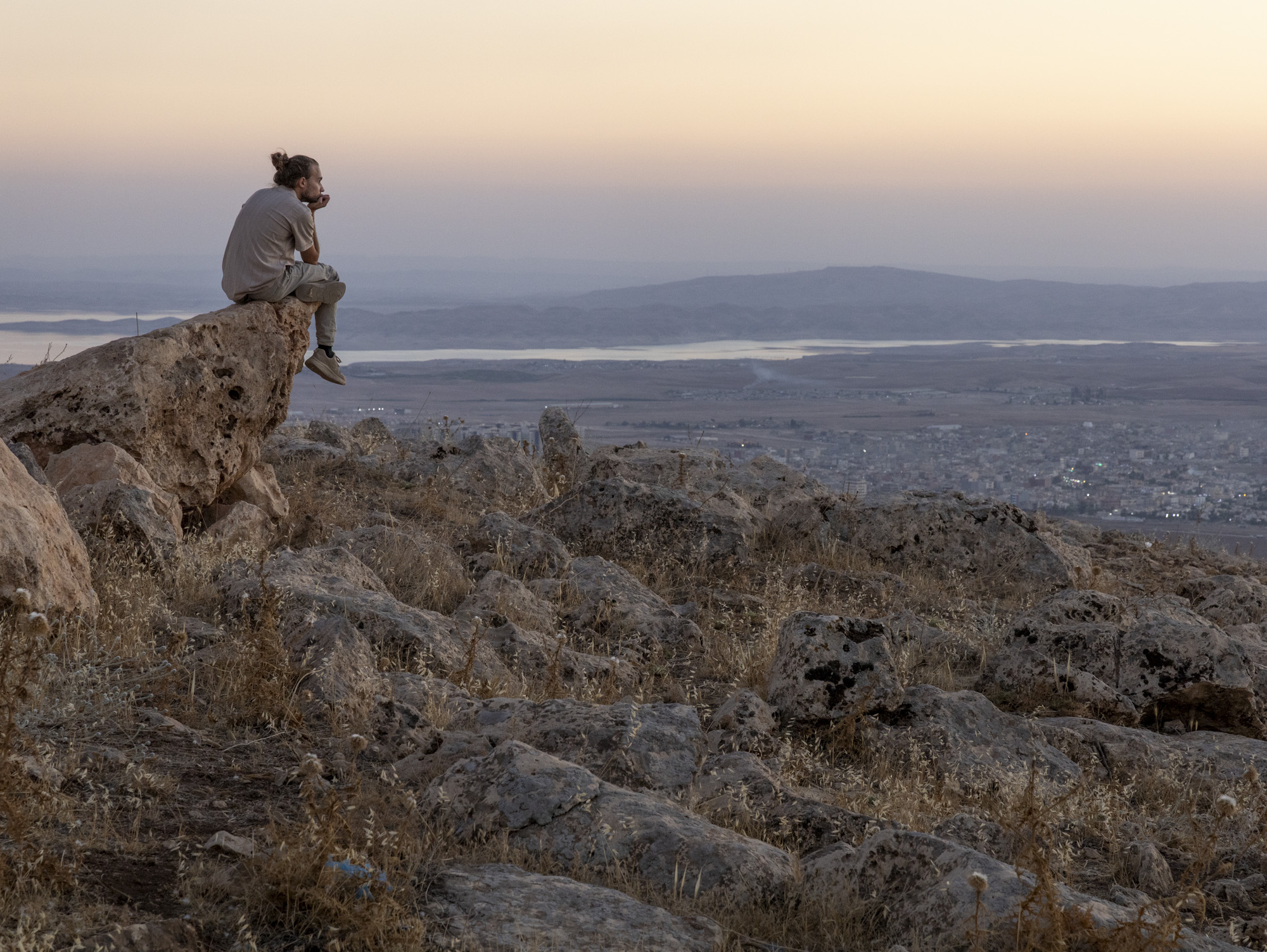 Mardin è la mia ultima tappa in questa prima fase di Turchia. In due giorni di pedalata sarò a Zakho, in Iraq. La strada che percorro costeggia ininterrottamente il confine con la Siria. Pianeggiante, avvolta da suolo giallo, e con la fredda continuità di una rete coperta di filo spinato, a fare da ulteriore barriera tra me e il muro del confine. Avamposti militari e inviti a bere çay danno il ritmo alla mia giornata, nella quale mi trovo ad avere talmente tanta teina in corpo che finisco per arrivare molto più lontano di quanto immaginassi. Passo la notte accampato vicino a una stazione di servizio a pochi chilometri da Cizre. Dalla mia tenda osservo il panorama durante il crepuscolo. A pochi passi ho la Siria, vedo le luci della città di Al-Malikiya. Così come poco più lontano vedo quelle di Zakho, ai piedi delle montagne irachene. A est sorgono quelle intorno a Şırnak, in Turchia, dove mi immagino uomini del PKK nascosti dietro qualche dente roccioso.