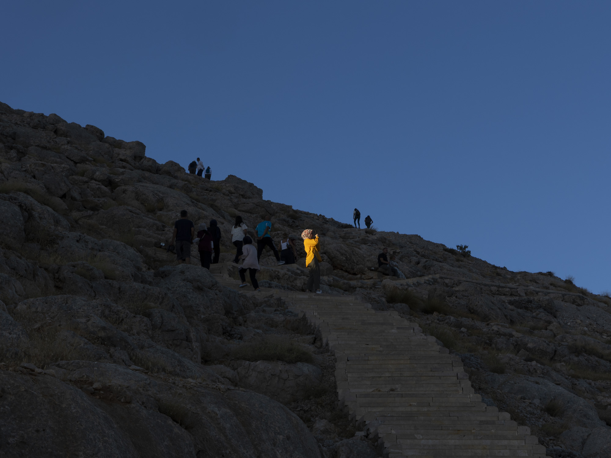 In ogni caso, che io voglia o no, è inevitabile. Nei giorni successivi avanzare diventa quasi un’impresa. È un continuo di inviti a casa, di persone che mi chiamano per bere un çay, di regali. Ogni 20-30 minuti di pedalata rimango fermo da qualcuno per altrettanto tempo. A volte dire che sono stato ingozzato appena mezz’ora prima sembra una dichiarazione incomprensibile, tanto che mi viene richiesto tre o quattro volte se sono sicuro di non voler mangiare. In ogni caso non c’è scampo, perché se non mangio con loro, il cibo me lo devo comunque portare via. C’è addirittura chi cerca di regalarmi dei sandali, viste le condizioni dei miei, che ormai da settimane sono un ammasso di scotch che cerca di tenerli insieme. Il numero 46 però da queste parti non esiste. Attraverso campi di tabacco e la città di Adıyaman, poi inizio a inerpicarmi tra le montagne. Giungo all’antico ponte romano di Cendere e poi al castello di Kâhta, dove decido di montare la tenda prima di affrontare, il giorno successivo, la temibile salita per arrivare in cima al Monte Nemrut.